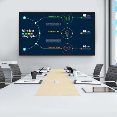 Nástěnné provedení s kovovými otvory vyhrazenými na okraji obrazovky pro snadnou instalaci.
