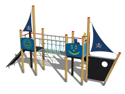 Skluzavka je vyrobena ze sklolaminátu. Čelo skluzavky, nášlapy atd. jsou vyrobeny z vysoce kvalitního plastu HDPE (vysokotlaký, celoprobarvený polyetylen, který se vyznačuje vysokou barevnou stálostí, odolnosti proti UV záření a hlavně bezpečností, protože je nelámavý a nehrozí tak žádné nebezpečí zranění dětí ostrými úlomky). Šplhací síť, lanový most a lano jsou vyrobeny z materiálu HERKULES (16 mm lana z polypropylenu s vnitřním ocelovým jádrem) a jsou spojovány plastovými nebo hliníkovými spoji. Podesty, šikmý výlez a kreslící tabule jsou vyrobeny z HPL (vysokotlaký laminát, který se vyznačuje vysokou barevnou stálostí, odolností proti poškrábání a odolností proti vodě). Veškerý spojovací materiál je pozinkovaný nebo nerezový.