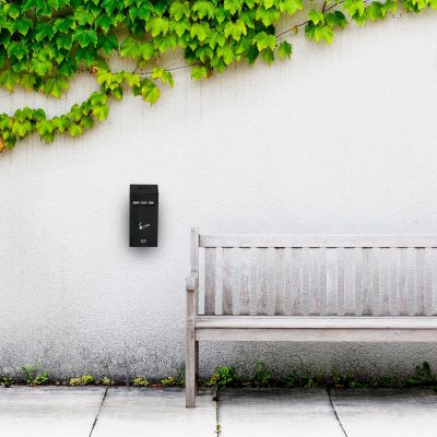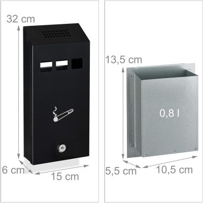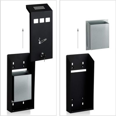 Nástěnný popelník do exteriéru, odolný proti povětrnostním vlivům, uzavíratelný, s montážním materiálem a klíčem, 32 x 15 x 6 cm, černý - SKLADEM - VÝHRADNÍ DOVOZ DO ČR A SR DM13456