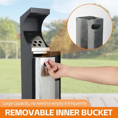 Vysoce kvalitní materiály: Venkovní odpadkový koš je vyroben z vysoce kvalitního pozinkovaného kovu, díky čemuž je vodotěsný, nerezavějící, nehořlavý a odolný proti korozi; koš je navržen tak, aby odolal každodennímu opotřebení a je vhodný pro celodenní používání.