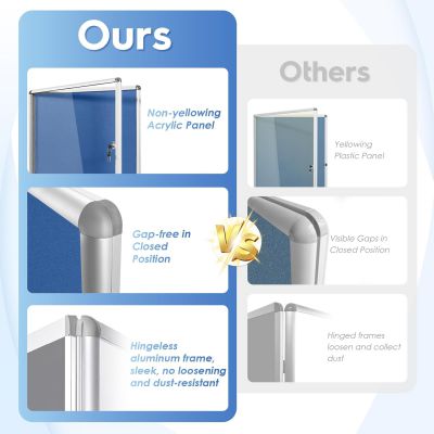 Prezentujte bezpečně a chráněně: Uzamykatelné akrylové skleněné dveře a systém klíčů zajišťují, že důležité informace jsou chráněny před povětrnostními vlivy, krádeží nebo manipulací.