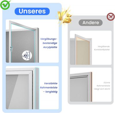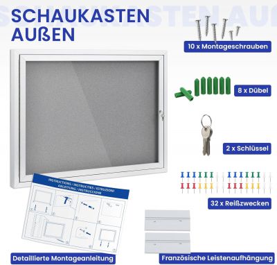 Bezpečná prezentace -- Pohled zvenku odolný proti povětrnostním vlivům A4 nabízí průhlednou, nerozbitnou akrylovou tabuli a uzamykatelné dveře (2 klíče) pro chráněné a dobře viditelné závěsy.