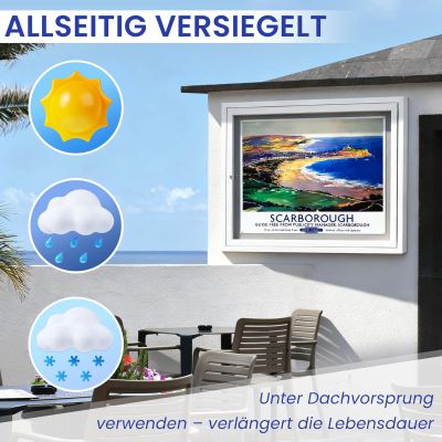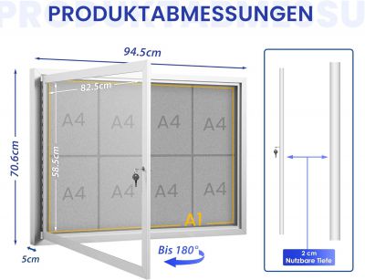 Velkorysý vnitřní prostor -- Pohled na venkovní prostředí odolný proti povětrnostním vlivům nabízí místo s rozměry 95 × 71 cm pro až 8 stran A4 a umožňuje jasné, strukturované zobrazení veškerého obsahu.