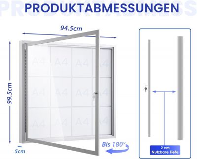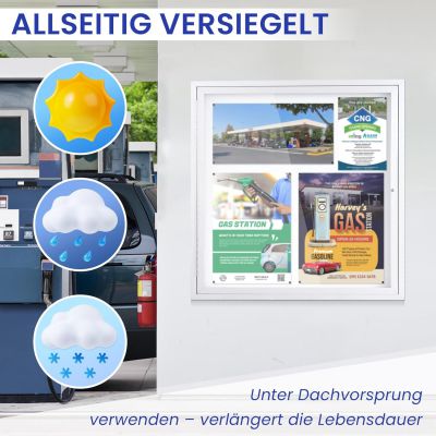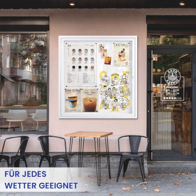 Ideální pro naše venkovní prostory, venkovní prostory, odolné proti povětrnostním vlivům, se vyznačují svou všestranností. Pro restaurace, hotely a školy i úřady a podniky je perfektní řešení pro prezentaci nebo zveřejnění řady dokumentů, plakátů, oznámení nebo jiných zpráv jasným způsobem.