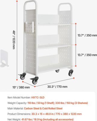 Bezpečně uložte velké množství knih nebo složek. I když je plně naložený, můžete vozík na knihy tlačit a tahat bez obav, že se převrhne nebo zřítí.