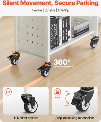 Udělejte si pořádek a zůstaňte organizovaní! Tento pojízdný regál na knihy nabízí vertikální rozšíření a kategorizovaný úložný prostor, abyste měli knihy a pomůcky uspořádané a na dosah.