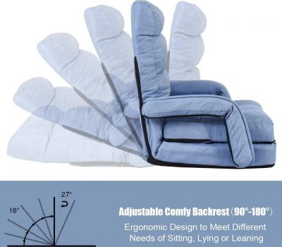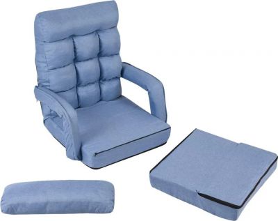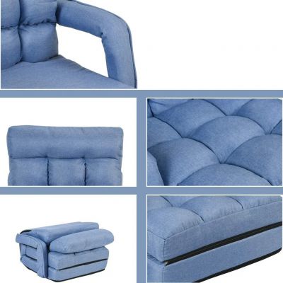 1 + 1 ZDARMA Rozkládací křeslo, rozkládací pohovka s područkami a polštářem, opěradlo nastavitelné v 5 stupních, křeslo na spaní, funkční křeslo do kanceláře (modré) DM7701