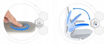 Pohyblivé područky, které zajišťují optimální nastavení ramen a loktů uživatele – lze je také maximálně naklonit nahoru a používat křeslo bez područek.
