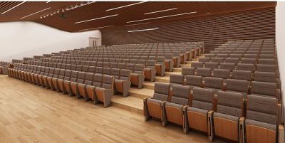 Design: Elegantní a moderní vzhled činí židli vhodnou pro auditoria, divadla a další veřejné prostory.