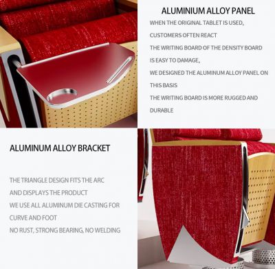 Tento produkt je navržen tak, aby splňoval různé potřeby komerčních prostor, jako jsou divadla a konferenční místnosti, s důrazem na moderní design a flexibilitu v materiálovém provedení.