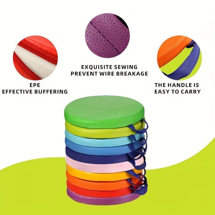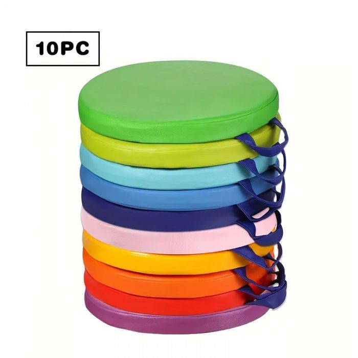 1 + 1 ZDARMA - nejprodávanější - prodejní MEGA HIT - Sada 10 dětských barevných polštářů na židle, kulaté s rukojetí a zipem, podlahový polštář, polštář na sedadlo, hlavní doplněk v mateřské a základní škole - SKLADEM - VÝHRADNÍ DOVOZ DO ČR A SR DM11366