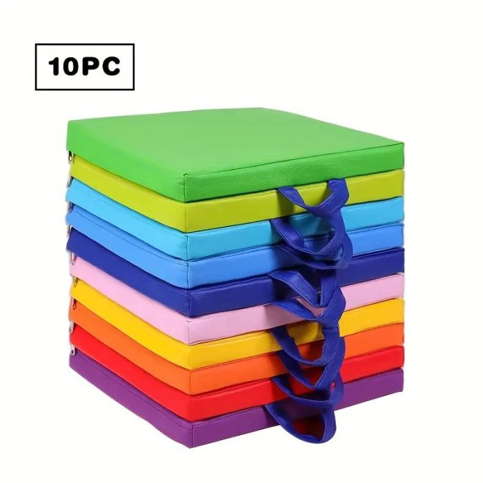 1 + 1 ZDARMA - nejprodávanější - prodejní MEGA HIT - Sada 10 dětských barevných polštářů na židle, kulaté s rukojetí a zipem, podlahový polštář, polštář na sedadlo, hlavní doplněk v mateřské a základní škole - SKLADEM - VÝHRADNÍ DOVOZ DO ČR A SR DM11367